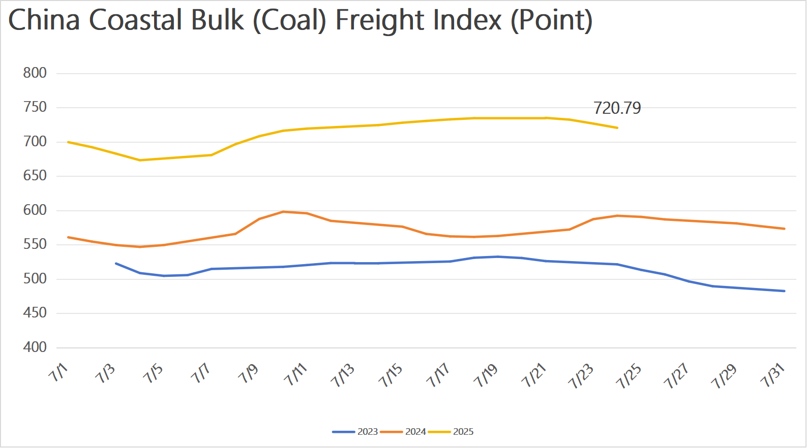 As of July 24, the China Coastal Bulk (Coal) Freight Index was 720.8 points, down 12.4 points from July 17.